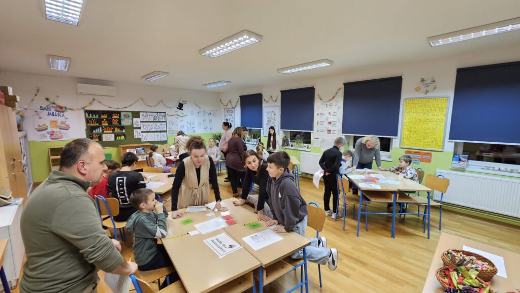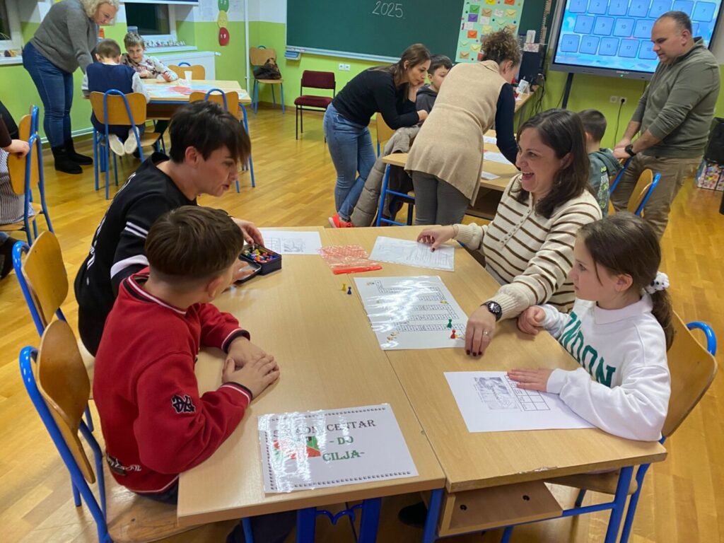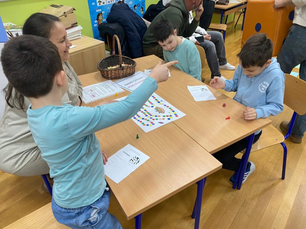 Kroz raznovrsne radne centre učenici su s veseljem rješavali zadatke, isprobavali nove igre i istraživali matematičke izazove, a pritom se i odlično zabavljali. Roditelji su, kao pravi pomagači i partneri u učenju, pokazali jednako puno entuzijazma — puni dobre volje uključili su se u aktivnosti i, barem na trenutak, probudili dijete u sebi.
