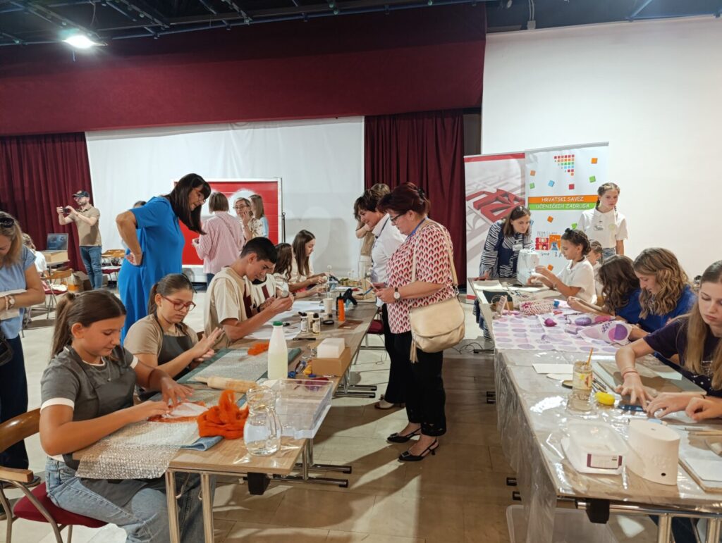 Naša zadruga predstavila se praktičnim radom izrade novčanika za kovanice, tehnikom mokrog i suhog filcanja vune. Učenice su svoj rad izložile i prezentirale pred povjerenstvom, a posebnu pozornost sudionika privukao je naš izložbeni štand.