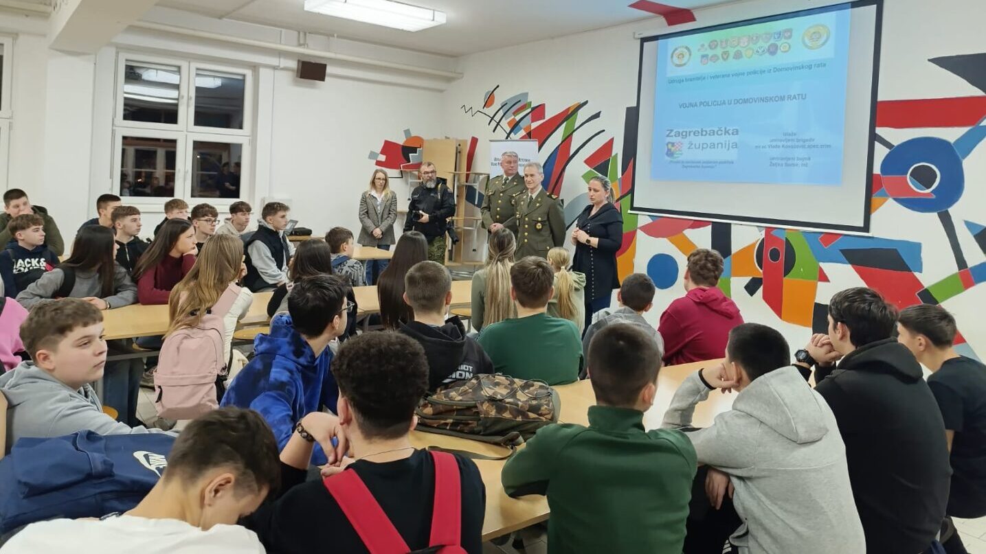 U četvrtak (19. 2.) u 18 sati umirovljeni brigadir mr. sc. Vlado Kovačević održao je sa svojim suradnicima predavanje na temu Domovinskog rata i uloge vojne policije u Domovinskom ratu za učenike osmih razreda. Učenici su mogli saznati zanimljive informacije o navedenoj tematici te se na taj način pripremiti za skori posjet Vukovaru u sklopu izvanučioničke nastave. Predavanje koje je odobrilo Ministarstvo znanosti, obrazovanja i mladih ugostile su i druge škole iz naše županije i na taj način ponudile učenicima dodatna saznanja o Domovinskom ratu o kojem učenici uče na nastavi Povijesti.
