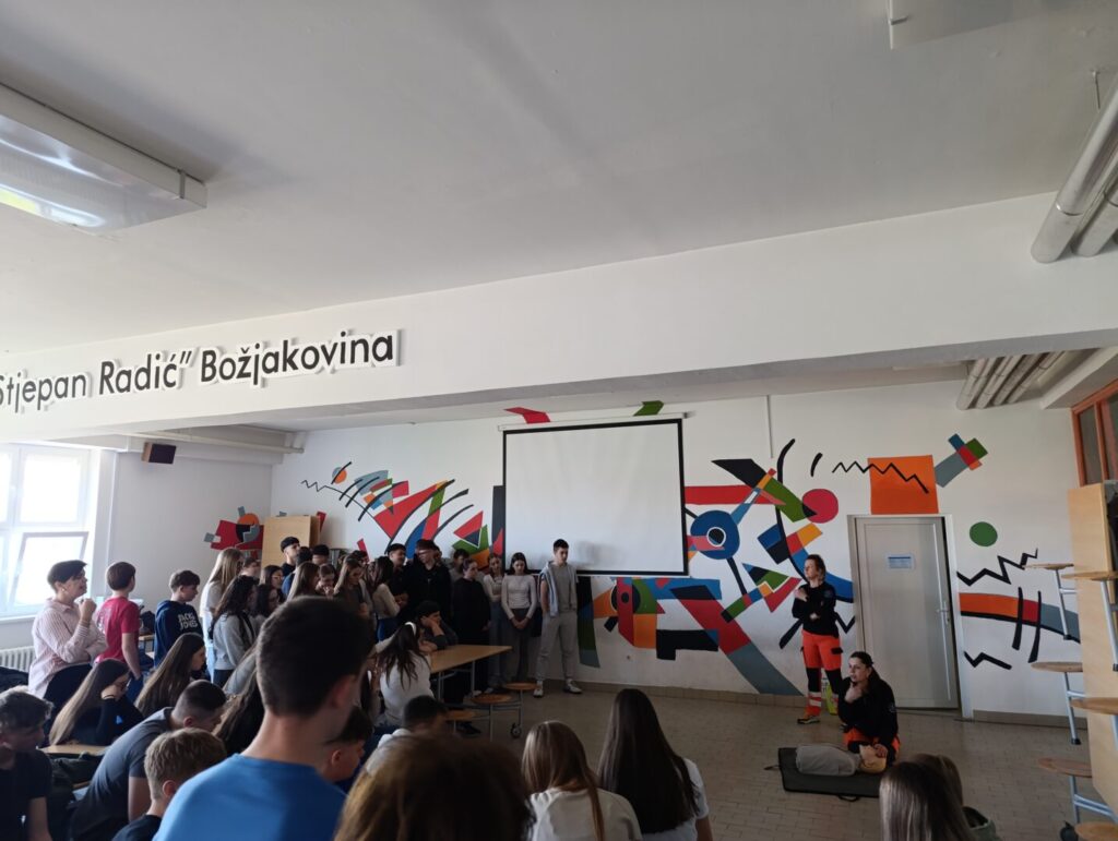 Predstavnice Zavoda za hitnu medicinu Zagrebačke županije održale su 5. ožujka 2026. predavanje iz pružanja prve pomoći za učenike osmih razreda i djelatnike naše škole.