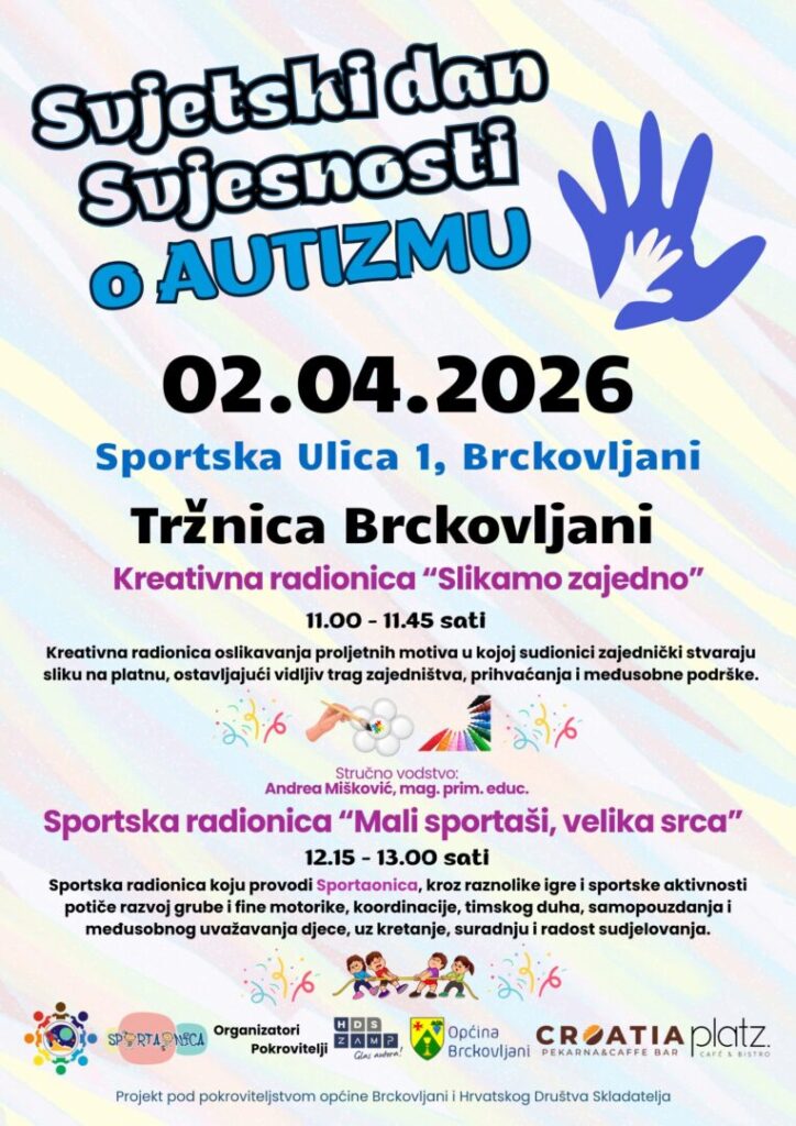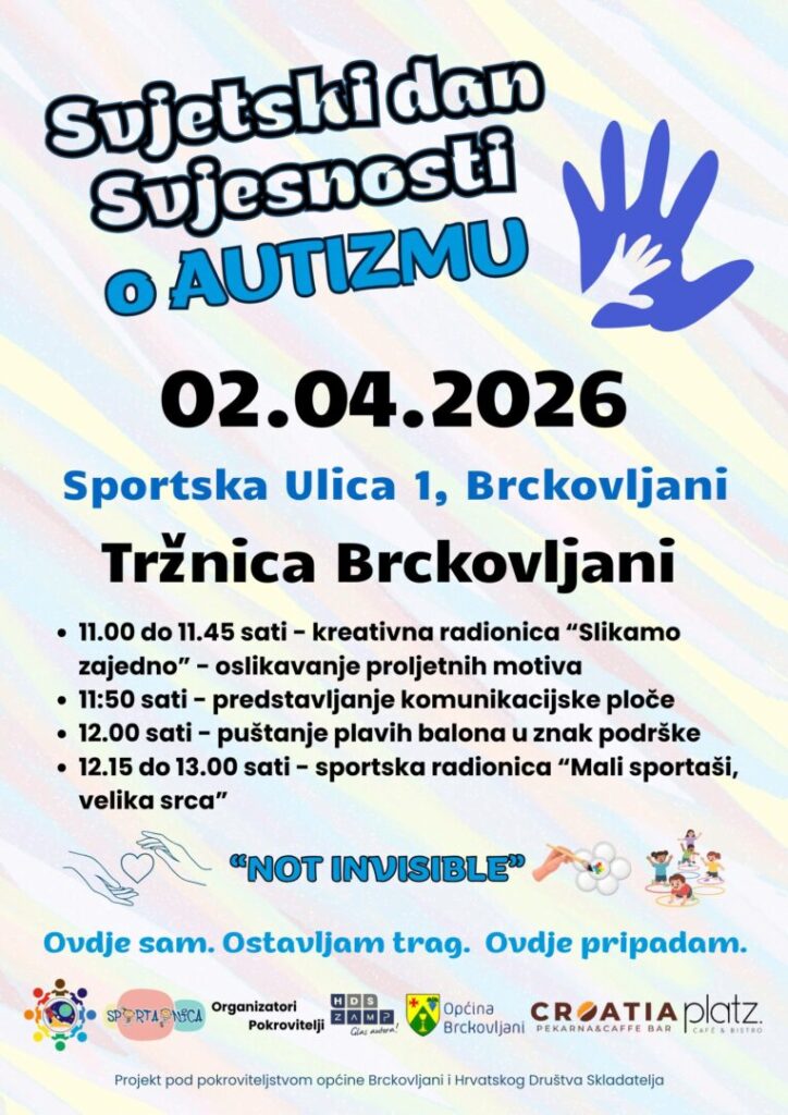 pozivamo vas da nam se pridružite u obilježavanju Svjetskog dana svjesnosti o autizmu koje će se održati 2. travnja 2026. godine u Brckovljanima, na prostoru Tržnice Brckovljani, u organizaciji udruge raSTEM u SPEKTRU.