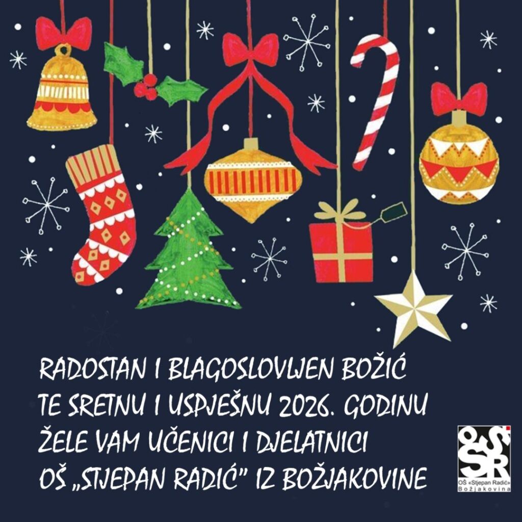 Sretan i blagoslovljen Božić te mirnu i uspješnu novu 2026. godinu, vama i vašim obiteljima, žele ravnatelj i Učiteljsko vijeće škole!