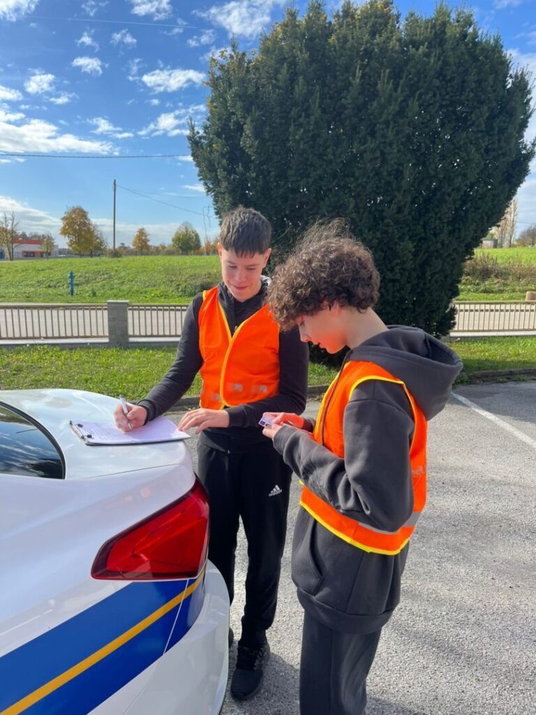 Učenici Luka Knežević (7.c), Ivan Nagy (7.a) i Luka Abramović (7.e) sudjelovali su u srijedu, 29. listopada 2025., u prometnoj patroli zajedno s policijskim službenicima Policijske postaje Dugo Selo. Aktivnost je provedena u sklopu projekta “Poštujte naše znakove”, koji promiče sigurnost u prometu i educira učenike o važnosti poštivanja prometnih pravila. Učenici su imali priliku vidjeti rad policije, razgovarati o prometnim znakovima i sudjelovati u nadzoru prometa. Čestitamo učenicima na angažmanu.